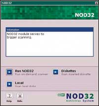 يعتمد برنامج تفحص الفيروسات (NOD32) والذي قمنا باختياره على استشعارات ذكية للملفات وذلك للتنبؤ بإمكانية استخدامها للوصول إلى البيانات الخاصة من قبل أشخاص غير مخولين أو إمكانية إحداث أية أضرار بها بالاعتماد على أسلوب الإرشاد (Heuristic) والبصمة (Signature) مما يوفر المزيد من الحماية والإعدادات الأمنية العالية لجهازك، فبعد أن تقوم بزيارة موقع البرنامج على شبكة الإنترنت وقبل تحميله إلى جهازك فإنه يلزمك اختيار النسخة المطابقة لنظام التشغيل المتوفر لديك ومن ثم تقوم بتنصيبها وتثبيتها في جهازك وعند تشغيل البرنامج فإنه ستظهر لديك واجهة البرنامج المرفقة والتي تتكون من مجموعة من القوائم ومنها:(Scanning targets) حيث يظهر من خلالها محركات الأقراص المتوفرة لديك وتحديد ما يناسبك منها لتفحصه أو تحديد الكل من خلال (Select All) كما يمكنك إلغاء التحديد من خلال (All Deselect) وللبدء بتفحص محركات الأقراص التي قمت باختيارها فمن خلال (Scan) ولتنظيف الملفات التي قام البرنامج باكتشافها من خلال (Clean) كما يمكنك الخروج من البرنامج مباشرة من خلال (Ouit) وللاطلاع على الملف المساعد والتعرف على الكثير عن البرنامج وطريقة عمله فمن خلال (Help) كما يمكنك من خلال القائمة وفي الجانب الأيمن تحديد مدى استخدامك للتفحص سواء في النظام المحلي (Local) أو في نظام الشبكات (Network)، ويقدم البرنامج دعماً لملفات التشكيل الجانبي من خلال الخيار (profiles) الذي يساعدك في تفحص بيئات مختلفة وبالإمكان استدعاء ملفات التشكيل الجانبي أو مناداتها من ضمن برنامج الجدولة الزمنية الذي يتيح تحديد تواريخ التفحص وتسجيل إجراءات الصيانة أو تنفيذ برامج خارجية، أو تنشيط المهام المرتبطة بأحداث معينة، ومنها على سبيل المثال الإقلاع الأول للنظام يومياً، أما من خلال الخيار (Scanning log) فهو ملف تسجيل العمليات وذلك للتدقيق في التفاصيل أو الفيروسات المكتشفة سابقاً، مع إمكانية التحكم بحجم هذا الملف وحذف العمليات قديمة التاريخ ، أما الخيار (Setup) فهو لاعدادات وخطوات البرنامج حيث يمكنك تحديد ما ترغب في تفحصه من ملفات البريد الإلكتروني والملفات المضغوطة وإدراج ملفات صوتية عند التفحص للتنبيه بوجود فيروسات بالإضافة إلى إمكانية تحديد حجم الملف النصي الخاص بنتائج التفحص(Logo) وتعديل الاسم الخاص به كما يمكنك الوصول إلى المزيد من الخيارات المتقدمة من خلال (Advanced).