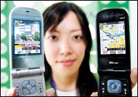 موظفة بشركة(KDDI) اليابانية إحدى الشركات العملاقة في مجال الاتصالات وتقنية المعلومات باليابان تستعرض عدد من أجهزة الهواتف الجوالة من نوع "W43T" ........