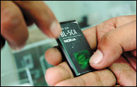 هندي يحمل بطارية جوال من إنتاج شركة نوكيا لاستبداله في مركز خدمة تابعة للشركة في مدينة حيدر الهندية. فقد أعلنت شركة نوكيا، أن حوالي 46 مليون بطارية من هذا النوع صنعتها في الفترة بين ديسمبر 2005 ونوفمبر 2006 تعاني من خلل في الصنع ينتج عنه ارتفاع