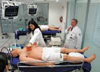طالبة طب مكسيكية تتمرن على إنعاش المرضى مستخدمة روبوتاً خاصاً للتدريب مشابهاً في تركيبته للبشر فيما يراقب المشرف أداءها عن بعد وذلك في إحدى محاضرات كلية الطب في ........