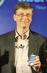 الملياردير العالمي وصاحب شركة مايكروسوفت العالمية السيد بيل جيتس يستعرض الهاتف الذكي الجديد المسمى تريو Treo الذي طورته الشركة بالتعاون مع شركة ........