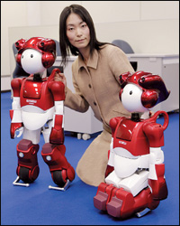 هيتاشيناكا - اليابانموظفة بشركة هيتاشي اليابانية تعرض روبوت بشرياً مزوداً بأرجل وعجلات قابلة للتغيير تتيح لها إمكانيات كبيرة لتنظيف الأرضيات.
