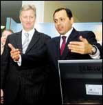 يظهر في الصورة الرئيس التنفيذي لشركة ريليانس الهندية السيد نيكيل ميساواني أثناء شرحه لآخر استخدامات التكنولوجيا والتقنية الحديثة في الشركة للأمير فيليب وتعد شركة ريليانس واحدة من كبريات الشركات الهندية المتطورة في علم التكنلووجيا والتقنيات الحديثة وتأتي زيارة الأمير فيليب ضمن جولته للهند التي تستغرق سبعة أيام.