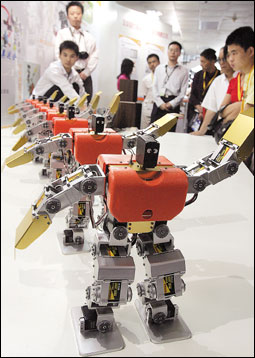 زوار معرض بكين للتكنولوجيا 2007م يبدون إعجابهم بعروض الروبوت. الصين سوف تزيد استثماراتها في العلوم والتكنولوجيا بنسبة 20% في عام 2007م لتكون في موقع المنافسة على المستوى العالمي.