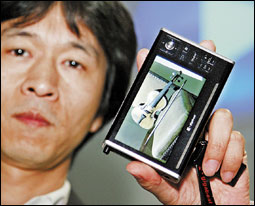 عملاقة الإلكترونيات توشيبا تعرض نظام تشغيل جديد متعدد القنوات مزود بقرص صلب سعة 80 جيجابيت وشاشة عرض رقمية(LCD) باتساع 4 بوصات، يمكنها تخزين 339 ساعة تصوير بالفيديو أو 20 ألف مادة موسيقية.