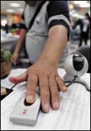 رجل تايواني يقوم بتسجيل بياناته من خلال استخدام جهاز البصمة في أحد فنادق تايوان، وكانت الحكومة التايوانية قد أعلنت في وقت سابق نيتها في بناء شبكة محلية كبيرة لاستخدام جهاز البصمة الإشعاعي كوسيلة للتعريف بالهوية في جميع أنحاء البلاد.