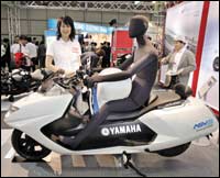 موظفة بشركة ياماها موتورز (Yamaha Motors) العالمية، وواحدة من أكبر الشركات العالمية المصنعة للدراجات النارية، تستعرض النموذج الأولي للدراجة النارية التي يتوقع أن تكون ........