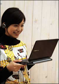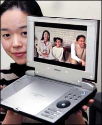 هيروكو موشيدا موظفة بشركة توشيبا العالمية تستعرض منتج الشركة الجديدة من مشغلات الدي في دي المحمولة وهذا الموديل الذي أطلق عليه اسم (SD-P2800)، مزود بشاشة عرض تبلغ مساحتها ........