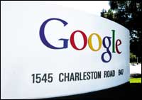 صورة توضح الشعار الرسمي لشركة جوجل العالمية بمقرها الرسمي بمدينة مونتاين فيو بولاية كاليفورنيا الأمريكية. وقد تعرضت الشركة مؤخراً لهبوط كبير في ........