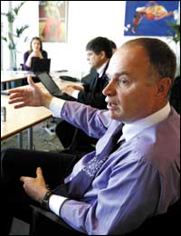 صورة تظهر المدير الإقليمي لشركة مايكروسوفت في أوروبا والشرق الأوسط السيد نيل هولواي أثناء إلقائه لكلمته الافتتاحية الخاصة بالإعلام التقني العالمي وذلك بالعاصمة الفرنسية ........