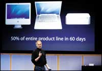 ستيف جوبز رئيس مجلس إدارة شركة آبلApple الأمريكية أثناء تحدثه للحضور في المؤتمر الصحفي الذي عقدته الشركة بمناسبة إطلاق ........