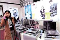 سيدة فيتنامية تعمل في إحدى محال البيع التقنية ببلدة هانوي الفيتنامية تجري اتصالاً بأحد عملاء المحل. وقد أعلنت شركة إنتل الأمريكية أكبر منتج لرقائق الكمبيوتر في العالم ........