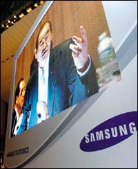 صورة لأحد أجهزة التلفزة المنتجة من قبل شركة سامسونج العالمية والرائدة في مجال الصناعات الإلكترونية.
