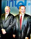 الرئيس التنفيذي الجديد لشركة إنتل (Intel) الأمريكية السيد بول أوتليني (يمين) وبجانبه الرئيس التنفيذي السابق للشركة السيد كريغ باريت، إبان توقفهما لالتقاط الصور الإعلامية للصحفيين قبيل إقامة الجلسة السنوية للشركة مع المستثمرين المساهمين فيها بمدينة سانتا كلارا بولاية كاليفورينا، وتأتي استقالة باريت عقب سبع سنوات كان قد قضاها كرئيس تنفيذي للشركة حقق فيها الكثير من النجاحات.