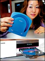 توضح الصورة الجيل القادم من مشغلات أسطوانات ال DVD إلى اليسار و التي تندرج تحت المجموعة (سونيالشعاع الأزرق) وباسم (BDZS77) والى اليمين مشغل DVD من إنتاج شركة توشيبا يندرج ........