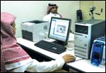مواطن سعودي يجلس أمام الكاميرا لالتقاط صورة شخصية لاستخراج بطاقة انتخابية له ليتمكن من التسجيل في انتخابات المجالس المدنية، والتي تعتبر الأولى من نوعها في ........