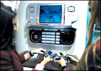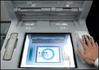 يعرض أحد موظفي شركة هيتاشي الإلكترونية الصراف الآلي الجديد الذي أنتجته الشركة ويتميز بنظام أمني جديد يعتمد على الوظائف الحيوية في جسم الإنسان.. فمن خلال تقنية جديدة يستطيع هذا الصراف أن يميز ........