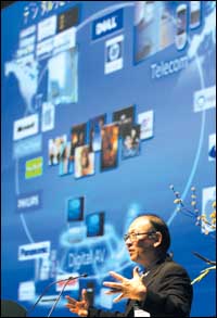 الرئيس العام والمتحدث الرسمي باسم شركة لينوفو الصينية والمتخصصة في صناعة الكمبيوتر أثناء إعلانه عن نتائج استثمارات الشركة للعقد الثالث من العام 20042005م وذلك بمدينة هونغ كونغ ........