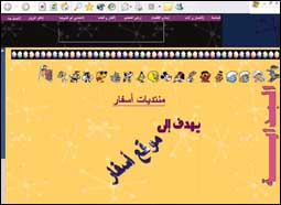 المحاور الرئيسية: البداية، أذكار وآداب، نادي الأطفال، ركن التعليم، أفكار وألعاب، القدس في قلوبنا، منتديات أسفار.