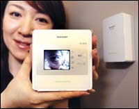 ساشيكو فوكوكاوا موظفة بشركة شارب الإلكترونية والرائدة في مجال الصناعات التقنية تستعرض منتج الشركة الجديد من الكماليات التقنية للمنزل وهي عبارة عن عدسة كاميرا رقمية لمعاينة ........