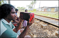 سريلانكي يتابع نشرات الأخبار التي تحذر من حدوث تسونامي جديد عن طريق الراديو، حيث أغلقت سريلانكا المدارس القريبة من السواحل الأسبوع الماضي وطالبت المواطنين بالحذر بعد أن ضربت سلسلة من الزلازل القوية أنحاء من إندونيسيا.