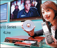 موظفة بشركة شارب تعرض مسجل أقراص (سي دي) جديد أنتجته الشركة بإمكانها التسجيل في طبقتين (قرصين) وتشغيلهما بصور عالية الدقة لفترة ست ساعات. ويتوقع وصول هذا المنتج إلى الأسواق في أواخر أكتوبر الجاري.
