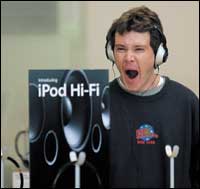 رجل يتثاءب أثناء استماعه لمقطع موسيقي عبر جهاز الآي بودiPo المشغل الموسيقي المنتج من قبل شركة أبل Apple العالمية. ولكن يبدو أن تحفة الشركة التي اعتبرت مؤخراً أفضل المشغلات ........