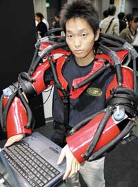 الطالب الياباني شو هاسيغاوا بكلية العلوم التابعة لجامعة طوكيو يعرض مشروعه الجديد وهو عبارة عن بدلة حديدية مشابهه لبدلات رسوم الأنيميشن أو الرسوم المتحركة. وأطلق عليها شو اسم ........