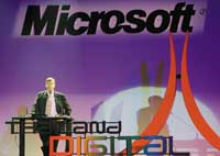 عارضة تابعة لشركة توشيبا العالمية تستعرض جديد الشركة من الأقراص الصلبة المخصصة لكاميرات الفيديو الرقمية. والكاميرا الجديدة مزودة بعدسة ذات مساحة تبلغ 31.5\6.3 ملم وشدة وضوح ........