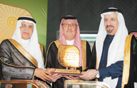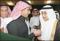 Eng. Abdulatif Al-Ateeq, Al-Jazirah Deputy Editor in Chief presented to the Minister of Telecommunications and Information Technology an explanation of the new service launched recently by Al-Jazirah, whereby the reader can review Al-Jazirah daily on the mobile phone. The easy to use technique provides full review of all pages of Al-Jazirah daily,