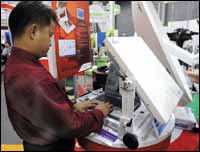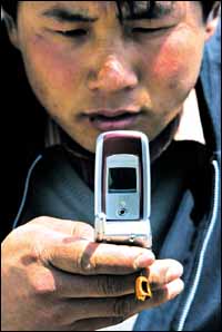 يظهر في الصورة أحد المواطنين الصينيين أثناء قيامه بإرسال رسالة من هاتفه الجوال بمدينة شنغهاي عاصمة الصين، وتعد الصين أكبر سوق للاتصالات في العالم بنسبة فاقت نصف التعداد ........