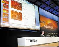 المدير البديل السيد دارين هيوستن لشركة مايكروسوفت العالمية وعملاقة البرمجيات وبرامج نظم التشغيل بالعالم أثناء إلقائه لكلمة تعريفية بنسخة نظام التشغيل( فيستا) الجديدة ........