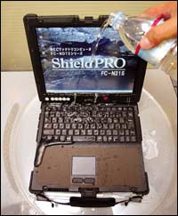 صورة توضح قوة ومناعة جهاز كمبيوتر نقال ضد السوائل المسكوبة عليه. وهذا الجهاز المصنوع من قبل شركة( NEC) اليابانية والمتخصصة في صناعة الأجهزة الإليكترونية تم عرض عدة تجارب ........