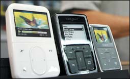 مجموعة من مشغلاتmp3 الموسيقية التابعة لشركة كرييتيف Creative الجديدة تعرض للمتسوقين في أحد المحلات الرقمية بسنغافورة. وكانت الشركة السنغافورية قد أعلنت عن عزمها منافسة شركة آبل العالمية في مجال مشغلات الموسيقى الرقمية والتي طالما سيطرت عليها
