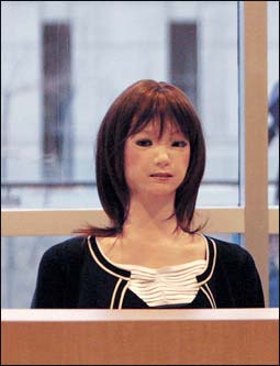 هذه السيدة اليابانية الواضحة في الصورة قد سحرت الكثيرين بجمال هندامها ولباقة كلامها مع الزوار في إحدى الجامعات اليابانية. فهي تقوم بالترحيب بطلاب الجامعة دون كلل أو ملل وتهدف الجامعة من هذه البادرة إلى تطوير مجالات صناعة الروبوتات وتحفيز الطلاب إلى دراسة هذا المجال.
