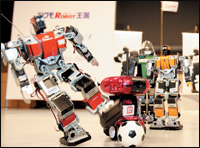 طوكيو، اليابان: روبوت من إنتاج شركة كوندو اليابانية يمارس لعبة كرة القدم في الحفلة الافتتاحية لملتقى أكيبا لرياضات الروبوت الذي أجريت منافساته في ضاحية أكيهابارا بمدينة طوكيو في الفترة من التاسع عشر وحتى الحادي والعشرين من أكتوبر الماضي بمشاركة مائتي روبوت.