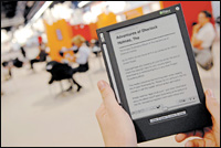 Frankfurt, Germany: Karel Byloos of the Dutch company iRex reads "Adventures of Sherlock Holmes" on an e-book at the Frankfurt Book Fair. The fair's guest of honour this year is Catalan culture.