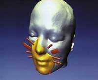 صورة جرافيكية تظهر على شاشة الكمبيوتر خلال المؤتمر الصحفي الذي أقامه عدد من الأطباء الفرنسيين لتوضيح إجراءات العملية التي اعتبرت الأولى من نوعها في العالم.