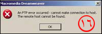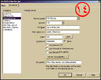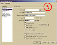 نختار من القائمة ftp ، ونكتب معلومات الدخول علي ملقم ftp في الخانات التالية وهي معلومات نأخذها من مذود خدمة الاستضافة الذي نتعامل معه وهي هنا - مثلاً - كالتالي: