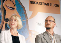 رئيسة قسم التصميم والأبحاث والتعاون الأكاديمي بشركة نوكيا للاتصالات الفنلندية أنا فالتونين ورئيس قسم الابتكار بالشركة هانو نيمينين في مؤتمر صحفي في مدنية بنغلور الهندية، حيث افتتحت الشركة قسما متخصصا في تصميم أجهزة الهاتف الجوال للمستخدمين في الهند وغيرها من الدول من أجل