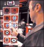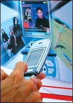 عدد من موظفي شركة سامسونج للإلكترونيات يشرحون لمرتادي معرض الشركة كيفية عمل التليفون المحمول الجديد من سامسونج SCHs310. ويذكر أن الشركة الكورية قد أعلنت مؤخراً عن ........