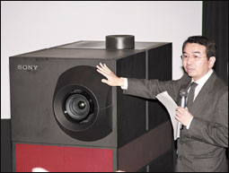 مدير عام شركة سوني للإلكترونيات يعرض جهاز بروجيكتور سينمائياً من إنتاج الشركة مخصص لعرض الأفلام السينمائية العالية الوضوح. وقد بدأت شركة سوني تلقي طلبات شراء لهذا الجهاز الذي سيتم تسويقه مقابل 125 ألف دولار أمريكي.
