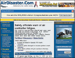 تم تدشين موقع الكوارث الجوية في عام 1996 كموقع صغير مخصص للسلامة الجوية، وتمت إعادة اطلاق الموقع في عام 1998 تحت اسمه الجديدAirDisaster.Com وهذا الموقع يعتبر حالياً الأبرز على شبكة الانترنت للمعلومات التي يقدمها عن حوادث الطيران. ويزوره شهرياً حوالي 5 ملايين زائر. |