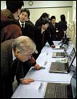 مجموعة من الصحفيين يستعرضون موديلات من الكمبيوترات المحمولة التي تعرضها شركة NEC بمقر الشركة الرئيسي بمدينة طوكيو اليابانية، وقد أعلنت الشركة بأن أرباحها من الإنترنت للربع الأول من هذه السنة ارتفع بنسبة 65.2%، ويعود الفضل في ذلك إلى زيادة الطلب ومبيعات شريحة الذاكرة الفريدة التي أطلقتها الشركة وأسمتها (Elpida).