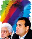 نائب الرئيس التنفيذي لشركة ويبرو الهندية فيفيك بول (يمين) والرئيس التنفيذي للشركة عازم برميجي (يسار) أثناء إجابتهما على أسئلة الصحفيين في المؤتمر الصحفي الذي عقدته الشركة للإعلان عن أرباحها للربع الأول من هذا العام، صرحا الشركة بأن أرباح شبكة الإنترنت قد ارتفعت بنسبة 58%.