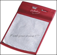 يمكنك الاحتفاظ بملاحظاتك التي تدونها أثناء الاجتماعات المهمة من خلال استعمال وسادة الملاحظات الرقمية هذه. ما عليك سوى وضع الورق العادي أو دفتر ملاحظاتك التقليدي عليها حتى تتولى هي تخزين معلوماتك. فبمجرد الكتابة عليها بواسطة قلم الحبر الرقمي المربوط بها، فإن وسادة الملاحظات تسجل كل صفحة كصفحة صورة رقمية ومن ثم يمكنك نقلها إلى