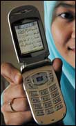 مواطنة ماليزية تستعرض هاتفها المحمول الجديد أمام المصورين من نوع I lkone 800 حيث تظهر على شاشته بعض الآيات القرآنية. وهذا الهاتف الجديد صمم وصنع خصيصاً للمستهلكين المسلمين، حيث يحتوي على مؤقت آلي لمواعيد الأذان للصلوات الخمس في أي منطقة في العالم، كما يحتوي على موجه للقبلة وتقويم إسلامي ويحتوي على السور القرآنية كاملة، بالإضافة إلى ترجمتها ويبلغ سعر هذا الهاتف 358 دولاراً أمريكياً.