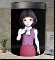 وفي الصورة شخصية (هاروكا) التي تم عرضها بواسطة جهاز الشركة الجديد وهي تعمل كموظفة استقبال تخاطب الناس القادمين إلى جناح الشركة المخصص في المعرض.