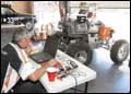 فيلي ياغر ممثل مونستر موتو MonsterMoto التي يقبع مقرها الرئيس في ولاية تكساس الأمريكية يقوم بفحص الدباب الآلي عبر جهاز كمبيوتره المحمول لمراجعة البيانات الإلكترونية للآلة التي سيشارك بها في سباق كبير تنظمه الحكومة الأمريكية وبالتحديد وكالة الدفاع والمشاريع للأبحاث المتقدمة وتبلغ مكافأة صاحب المركز الأول في هذا السباق مليوني دولار أمريكي وتجري أحداثه بصحراء نيفادا جنوب لاس فيغاس.