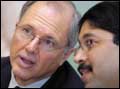 يظهر السيد ديانيدهي ماران وزير التكنولوجيا والمعلومات الهندي (يمين) وهو يتبادل الأحاديث الجانبية مع المدير التقني لمجموعة مايكروسوفت العالمية السيد كيخ مندي ابان قيام الوزير الهندي بافتتاح مقر الأبحاث الجديد الخاص بشركة مايكروسوفت.. ويعد هذا المقر البحثي للشركة ثالث مقر يتم إنشاؤه خارج الولايات المتحدة الأمريكية وقد أطلق على المقر مسمى Scientia أو سنتيا وهي كلمة لاتينية تعني (العلم).